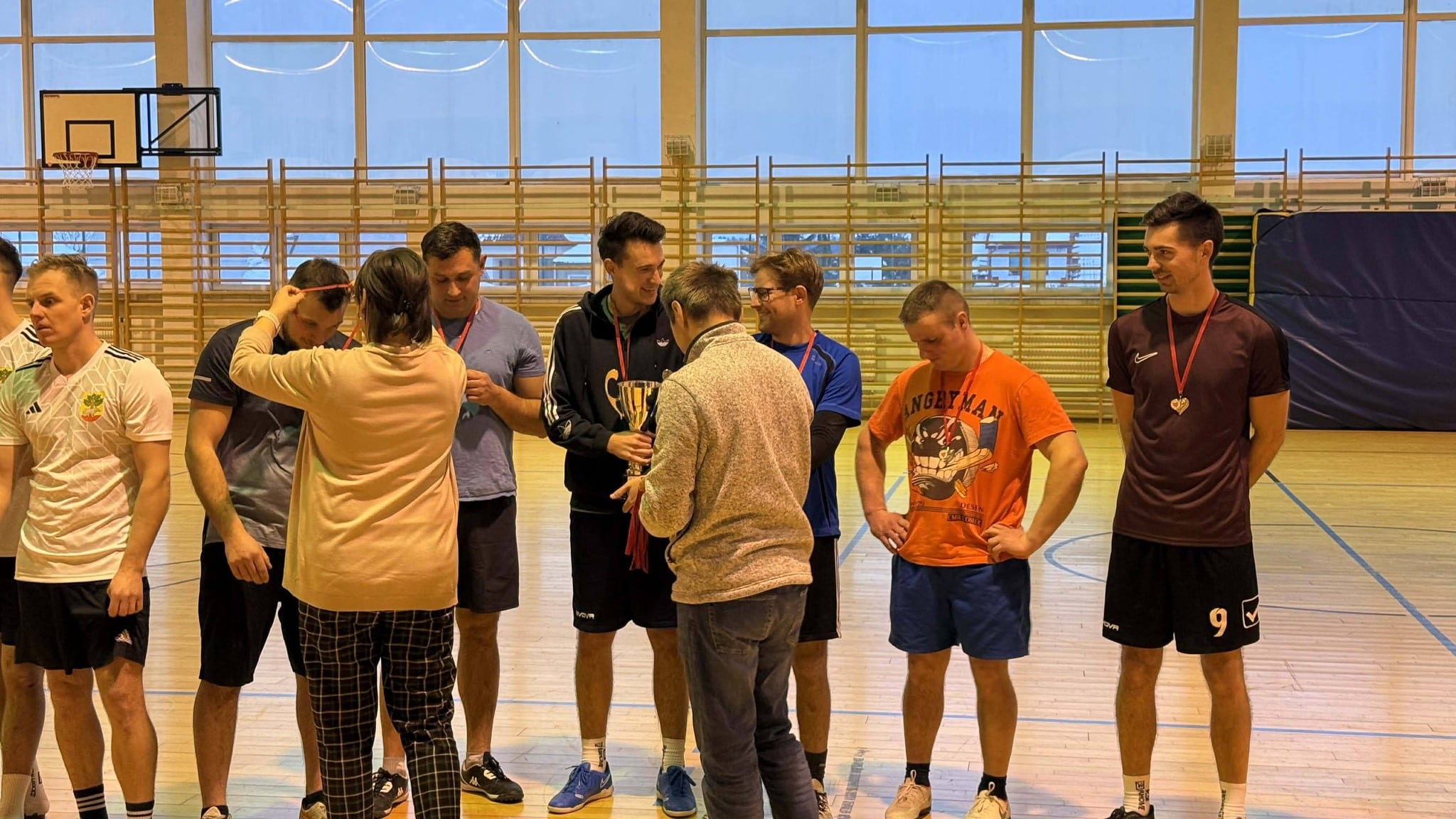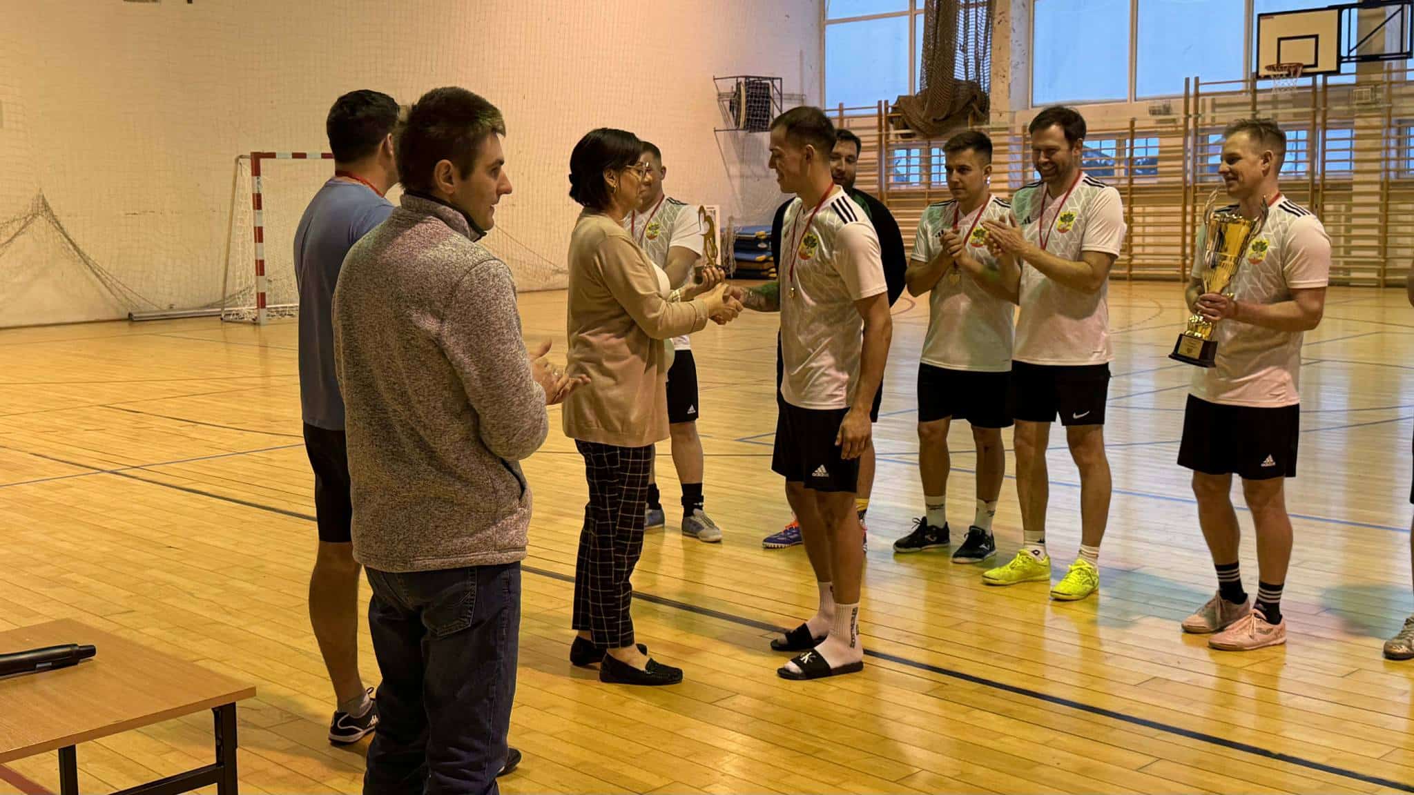 Uczestnicy dzisiejszych rozgrywek futsalu, które połączyły pokolenia, bo rywalizowali juniorzy i oldboye, przekazali na rzecz WOŚP 2210 zł.